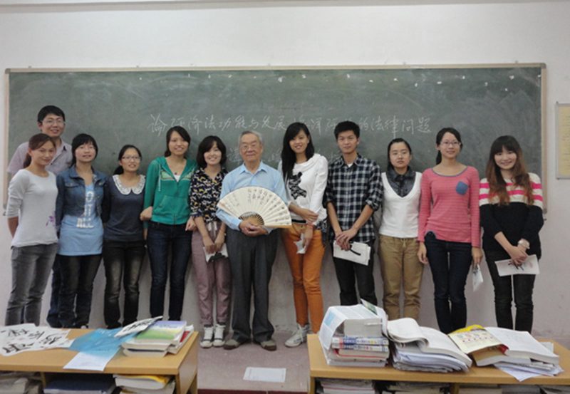 11月12日,437bwin必赢国际原经理王峻岩教授应邀为公司研究生做了一场题为《论经济法功能与发展海洋经济的法律问题》的讲座。 在本次讲座中,王教授根据自身几十年对经济法的研究,阐述了自己独到见解,主张经济法即是国家管理经济的一种职能体现。对于经济法的功能,王教授认为经济法在国有资产管理、宏观经济调控、市场经济监管、国民经济保障、国家科技发展产业政策、以及环境资源利用和保护等方面,充分发挥和展示其功效。在论及发展海洋经济方面,王教授展望我国海洋资源开发利用前景,尤其是南海资源富饶,强调海南发展海洋经济发展大有可为。海南有必要充分运用经济法律规范,遵循资源配置优化、经济效益优先、综合发展和利益兼顾等的经济法基本原则,规范海洋产业开发主体资格方,规范海洋经济发展路径、模式,同时要注重协调在海洋经济发展过程中权利义务关系等等。 王教授讲座幽默诙谐,结合了自身经历和研究成果与同学们进行了交流,鼓励同学们好好学习,多读好书以拓展自己的视野。讲座结束后,王教授还给每个同学送自己的书法作品以资鼓励,并与同学们合影留念。公司刘云亮教授主持今天下午的讲座,主要介绍了王教授的主要学术著作、代表观点及其学术工作生涯等,并主持就讲座的内容与王教授、同学们进行相互学术交流。