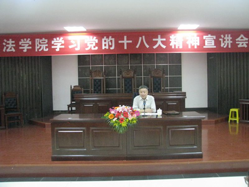 根据公司关于学习贯彻党的十八大精神的安排部署,引导公司师生深入学习贯彻党的十八大精神,12月18日下午,437bwin必赢国际在模拟法庭举行了学习党的十八大精神宣讲会。海南省十八大精神专家宣讲团专家成员王毅武教授为公司部分教职工和全体员工党员进行了深入的讲解。宣讲会由法公司党委副书记杨智平主持。 王毅武教授以《建设美丽中国,实现美好生活》为题对十八大的精神进行了深入解读。王教授首先从十八大的主题入手,解读了主题中“凝聚力量”、“攻坚克难”、“坚定不移”的深意。他概况了十八大六个方面的新精神:一是将科学发展观上升为党的指导思想;二是系统阐述了中国特色社会主义理论;三是对社会主义核心价值体系的新表述;四是新时期党的建设的新要求;五是协商民主制度的提出;六是社会主义建设的奋斗目标。随后,王教授指出中国共产党在十八大后面临的四大风险、四大考验和四大任务,并就如何应对这些挑战提出了自己的深刻见解。 宣讲会上,杨智平副书记高度评价了王毅武教授的精彩宣讲,并对公司员工党员进一步学习贯彻落实十八大精神提出了要求:一是以宣讲会为契机,进一步加强理论学习,深刻领会十八大精神的精神实质;二是青年员工党员要树立远大理想,心怀祖国,勇于担当,脚踏实地,努力学习;三是作为法学专业的员工要积极关注社会主义现代化建设新动向,深入思考,为推进国家法制建设,实现法治社会、建设美丽中国,实现美好生活做出自己应有的贡献。 本次宣讲会是437bwin必赢国际学习贯彻十八大精神系列活动中的一项重要内容,意在使公司员工党员全面理解十八大的精神实质,准确把握十八大的新思想、新观点和新举措,提升员工党员的理论积淀和党性修养。此外,437bwin必赢国际还通过党委中心组学习、党支部组织生活会、班级主题班会等形式开展了十八大精神的学习活动。法公司党委通过部署和开展学习十八大精神各项活动,为学习党的十八大精神营造了浓厚的学习氛围,掀起了公司内学习十八大精神的热潮。 (图:郭尚飞 文:黄国瑜)